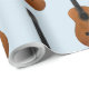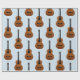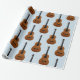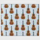 Papel de envoltura musical con un patrón de guitarra acústica sobre un fondo azul pálido. Ideal para empacar regalos para el guitarrista en tu vida.