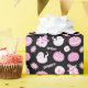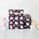 Patrón de Halloween negro y rosa de moda con elementos lindos que incluyen fantasmas, calabazas, palabras de Halloween, cráneos y gorras de brujas.