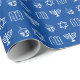 Iconos judíos modernos, azules y blancos, patrón elegante regalo de Hanukkah Papel envuelto. El diseño presenta Star of David, Hebreo Magen David, Dreidel, menorah, Torah, patrón blanco sobre fondo azul. Este papel de envoltura es muy bueno para Hanukkah, Chanukah, bar mitzvah, bat mitzvah, Shabbat y Jewish Holidays.