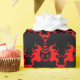 El patrón sin costura consiste en el cabello del genio malvado con el pelo rojo inflamante y forma el cuerpo negro. La cabeza es negra con una malvada sonrisa roja y un negro rayado; y una gorra roja de zincho. Los elementos de las imágenes fluyen juntos, lo que hace que se sienta un poco extraño.