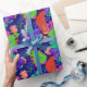 Diseño de patrones de jungla vibrante sobre fondo azul