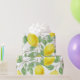 Frutas modernas de limón con hojas y flores sobre fondo blanco