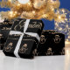 Patrón de muñeco de nieve elegante Navidades de Relieve metalizado dorado negro y falso regalo Papel de envolver, elegir brillante o mate, nombre personalizado y texto