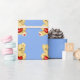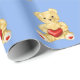 Niños personalizables envueltos en papel con unos osos de peluche adorables sosteniendo un corazón rojo y hipnotizándote con su mirada intrigante, sobre fondo azul claro. Este encantador y huggable papel envolvente de osos de peluche sería genial para envolver regalos para niños o para alguien que amas.