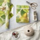 Peras y hojas verdes sobre el diseño de patrones de fondo blanco.