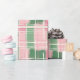 Esta imagen presenta un patrón de trenzas rosadas y verdes con una franja blanca recorriendo la imagen. El patrón consiste en intersectar líneas verticales y horizontales en tonos rosados y verdes, creando un diseño visualmente atractivo. Los colores son suaves y pastel, lo que confiere al conjunto un aspecto delicado y encantador. La adición de la franja blanca aporta un contraste nítido al diseño general. Este patrón de manto sería perfecto para una variedad de aplicaciones textiles, como ropa, decoración doméstica o accesorios. El conjunto es fresco, moderno y de diseño. Un Patrón Pintado De Color Rosa Y Verde. Un Patrón Rojo Y Verde Con Un Borde Blanco. Patrón de tracción con fondo rosado y verde. patrón, rosa, trenzado, tela, ilustracion, línea, color, verde, dibujo, imagen, cuadrado, cuadrícula, rectángulo, tinta, comprobar