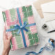 Papel De Regalo Patrón De Pescado Rosa Y Verde Con Una Banda Blanc