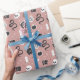 El espeluznante papel de envoltura de moda presenta un patrón de serpientes, cristales místicos, pociones, ortografías, velas, tarros, cráneos, tarjetas de tarot y pociones sobre un polvoriento fondo rosa rosa.