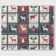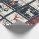 Este papel de envoltura muestra un patrón de tejido de punto con encanto de bosque, con ciervos estilizados, pinos y motivos rústicos dispuestos en una rejilla de bloques. Se presenta en una paleta festiva de crema, azul oscuro y rojo, y destaca el aspecto acogedor de los puntos trenzados y la artesanía tradicional del invierno. Perfecto para los amantes del estilo rústico de una casa de campo, diseños nórdicos de vacaciones y decoración de Navidades de inspiración vintage. Un diseño cálido y atemporal que aporta el espíritu de los bosques de invierno a la temporada festiva.