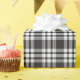 Este elegante diseño de papel de envoltura cuadrada presenta un patrón clásico de estratificación escocesa en blanco y negro. Impresión escocesa vintage para regalos.