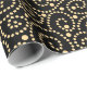 Un hermoso y elegante patrón de puntos y giros negros y dorados en papel de envolver regalo.