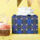 Patrón étnico vectorial con motivos kazajos, marroquíes y turcos en azul índigo. Textura para web, impresión, papel pintado, decoración de casa, moda de verano otoño, sitio web o fondo de menú de restaurante oriental © y ® Bigstock® - Todos los derechos reservados.