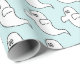 Divertido y fresco blanco y negro sobre un fondo azul claro Halloween Ghosts Patrón Papel envoltorio de papel. Perfecto para tu próximo evento de Halloween.