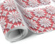Papel De Regalo Patrón festivo de copos de nieve rojos y blancos
