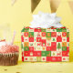 Collage festivo de cuadrados, cada uno con un diseño único relacionado con las fiestas. La paleta de colores incluye principalmente tonos rojos, verdes, crema y dorados.