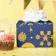 Estos Navidades nacen con un mar de copos de nieve dorados y árboles navideños, todos envueltos en un fondo azul real, evocando el esplendor de los Navidades ucranianos tradicionales con un toque artístico moderno.