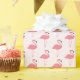 Papel de envoltura de flamencos con un patrón de flamencos rosados sobre fondo rosado.