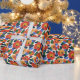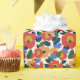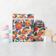 Un diseño floral abstracto, vibrante y audaz, con grandes flores rojas, naranjas y azules con hojas verdes y navales sobre un fondo crema. Las formas lúdicas y los colores vivos crean una estética artística moderna, perfecta para tejidos, tapices o estampados decorativos.