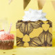 Papel de envoltura de flores amarillas con una obra de arte abstracta creada a partir de un elemento pétalo dibujado con tinta. Este patrón floral bonito con formas hexagonales tiene colores cálidos amarillo y marrón oscuro.