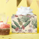 Este elegante papel de envolvimiento tropical presenta un patrón floral de flamencos rosas dibujados a mano, hibiscos y flores jazmín, piñas, hojas de plátano y bebidas tropicales, todo ello con un elegante fondo amarillo suave.