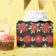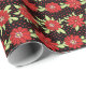 Este papel de envolvimiento incluye flores negras y rojas con hojas verdes de color.
