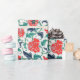 Se trata de una colorida acuarela vintage floral con flores rojas y hojas verdes sobre un fondo blanco.