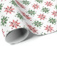 Papel De Regalo Patrón floral rojo y verde sobre blanco
