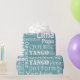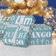 Papel de envoltura de Guay impreso con el alfabeto fonético en azul y blanco.