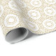 Elegante papel de envolvimiento de regalo con motivos decorativos geométricos retro de color blanco y dorado. Ideal para cumpleaños, celebraciones, Navidades y feriados.