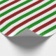 Este diseño de papel envolvente presenta rayas de inspiración Navidad de color verde, blanco y rojo. Poner papel como este puede ser divertido de usar cuando se preparan regalos o regalos para celebrar un cumpleaños, un boda, un aniversario o algún otro evento.