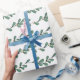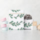 Papel de envolver de vacaciones con un patrón de ramas de mistletoe a mano lleno de hojas verdes y salpicado de bayas.