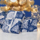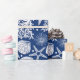 Papel de envoltura con motivos náuticos azules y blancos de Guay con conchas marinas, corales, algas marinas y pez estrella.