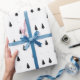 Un papel de regalo elegante con un patrón elegante de Navidad y temporada de vacaciones de invierno de abetos y nieve en invierno. Imágenes negras decorativas sobre fondo blanco. Bueno para envolver tus regalos de Navidad, Año Nuevo, cumpleaños y otros. Este diseño es personalizable. Puedes cambiar la imagen. Puedes transferir el diseño a otro producto. Si deseas reubicar la imagen, ajustarla a la forma de un producto elegido, agregar algún texto, por favor, use el botón "Editar diseño" o "Personalizar" (según sea el caso) de color azul. Te llevará a la "Herramienta de diseño" donde podrás hacer toda la personalización. Solo sé creativo, personaliza y compra uno, disfruta y sé feliz.