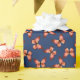 Este papel de envoltura de regalo presenta un patrón de mariposas voladoras en tonos rosados y naranjas con cuerpos negros. El color de fondo azul marino es fácil de personalizar.