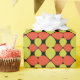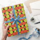 Este papel de envoltura de regalo presenta un patrón abstracto de pétalos de flores o lágrimas en colores retro contemporáneos de naranja y verde vívidos que se basa en motivos similares de mediados de siglo Modernos de los años 50, 60 e incluso a principios de los 70.