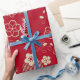 Papel De Regalo Patrón rojo asiático con flores primaverales