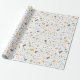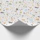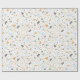 Patrón de terrazo colorido sobre fondo blanco. Parece que se imprimen chips de granito mixto y rocas de cuarzo. Los bordes afilados ilustracion piedras.