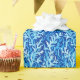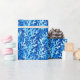 Papel envuelto en un patrón de fachadas estilizadas, inspiradas en algas, en tonos azul hielo, entremezclado con gracia contra un rico fondo cobalto, para un diseño dinámico de temática marina