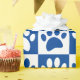 Impresiones de la pata de perro azul y blanco en cuadrados. Personalizados envuelven rollos de papel para los amantes del perro y sus perros.