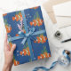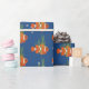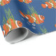 Pescado de payaso en algas con burbujas y fondo azul. Se puede cambiar el color de fondo.