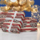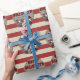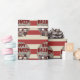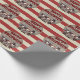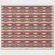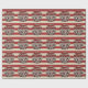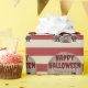 Este espeluznante papel de envolver de Halloween personalizado presenta un temática espeluznante del carnaval. Tres payasos aterradores están de pie como grupo. En el fondo se presenta un poster de carnaval de papel de pergamino de estilo vintage, sobre un patrón de rayas rojas y blancas. El saludo "Halloween feliz" se imprime en la parte superior con una fuente siniestra y roja. Un nombre de familia de ejemplo se imprime encima de los payasos, que puede personalizar para incluir su propio nombre o texto personalizado.
