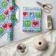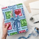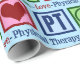 Papel de envoltura de fisioterapeuta para regalos de Navidades con signo de paz, corazón y PT. Envoltura de regalo de Terapia Física por la Paz.