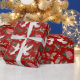 Hermosas palomas pintadas rodeadas de Navidades follaje verde y flores, paz con letras a mano en la tierra, para envolver los regalos de sus Navidades con un moderno y elegante ilustracion para las vacaciones. Obra de arte original de Caroline Bonne Müller