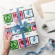 Un signo de paz, corazón y un corredor en un hermoso fondo azul para alguien a quien le gusta correr maratones. Un gran Navidad envolviendo papel para alguien que ama correr en pista.