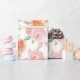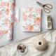 El papel envolvente del Rubor Garden incluye flores de color agua suave en melocotón y rosa, perfecto para regalos románticos, bodas y celebraciones de primavera.