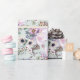 Hermoso papel de envoltura de regalo para ocasiones perfecto para bodas, cumpleaños y aniversarios. Cuenta con un fondo verde claro y sabio con abundantes elementos botánicos de peonía, anémona, helébore y eucalipto. Parte de la colección de Bodas Jardín Peony.