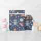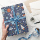 papel de embalaje Espacio-temático con un modelo de los astronautas de la pereza que flotan en espacio entre las naves espaciales, las naves espaciales extranjeras, los planetas, las estrellas fugaces, y las lunas.