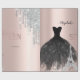 Elegante vestido negro, con diamantes en el diseño de la Torre Eiffel y purpurinas plateados goteando sobre un rosa dorado.