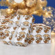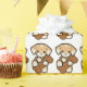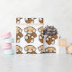 Pequeño perrito marrón lindo con un hueso grande en sus brazos. Fondo blanco.