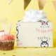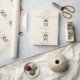 Perro suave blanco y negro con bandana rosa sobre fondo color crema. Sólo hay que añadir un nombre a este diseño.